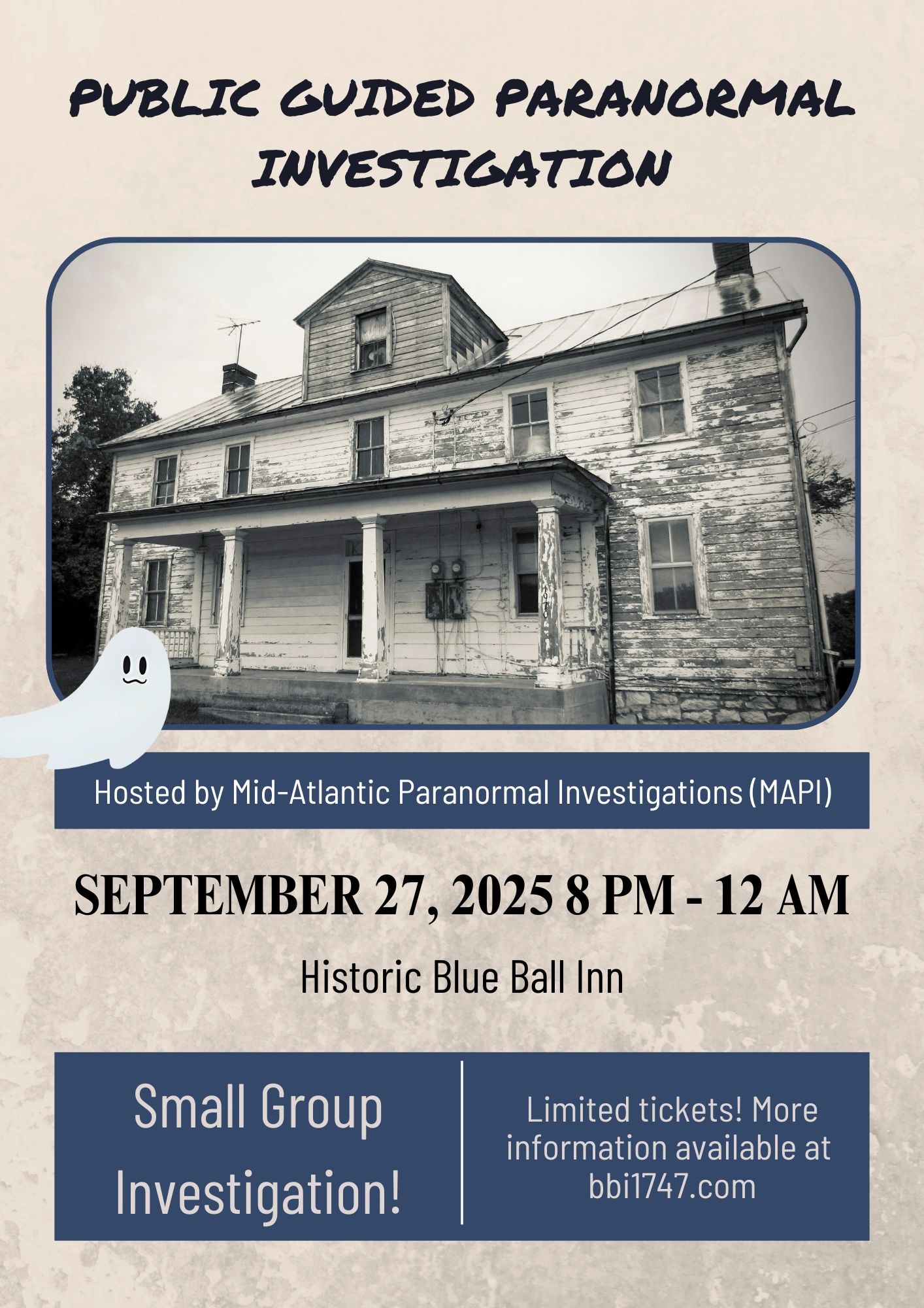 Join Mid-Atlantic Paranormal Investigations (MAPI) for a Guided Public Investigation of the Historic Blue Ball Inn!